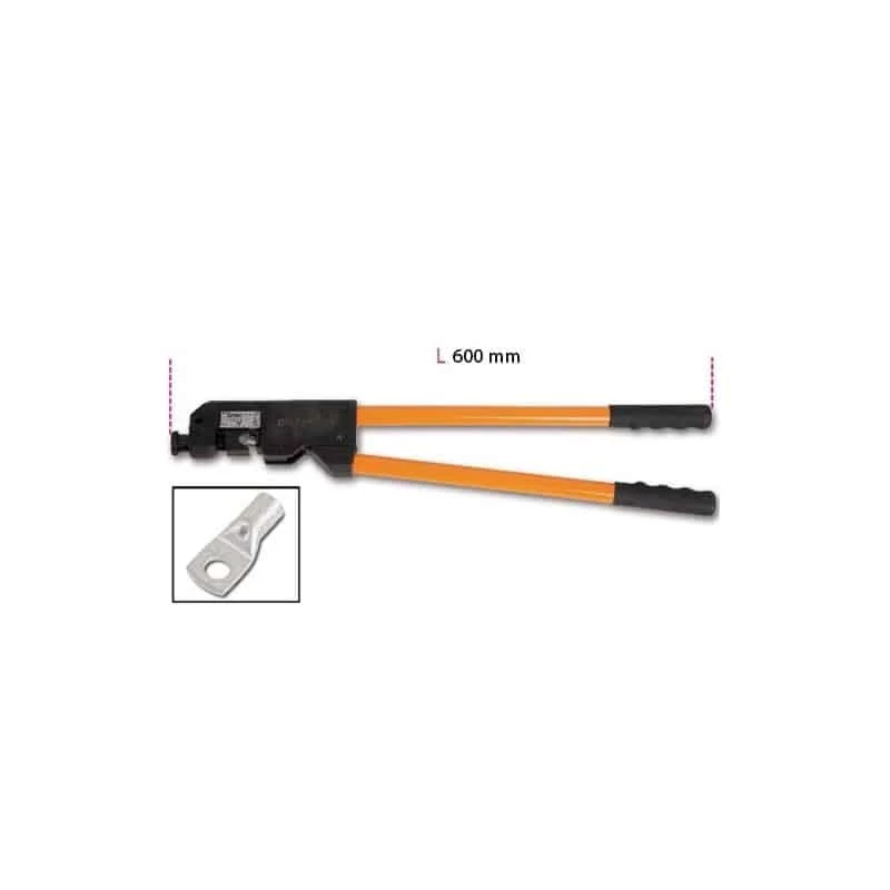 Pince à sertir mécanique en acier bruni, sertissages à poinçon de10 mm² à 120 mm², idéale pour cosses en cuivre non isolées. Avec branches en caoutchouc antiglisse. Axe interne avec section en “H” pour un passage optimal du poinçon.