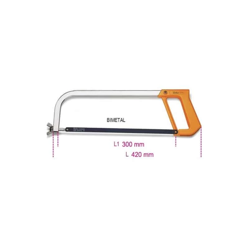 Monture de scie à métaux bi-métal avec lame, d’une longueur totale de 420 mm.