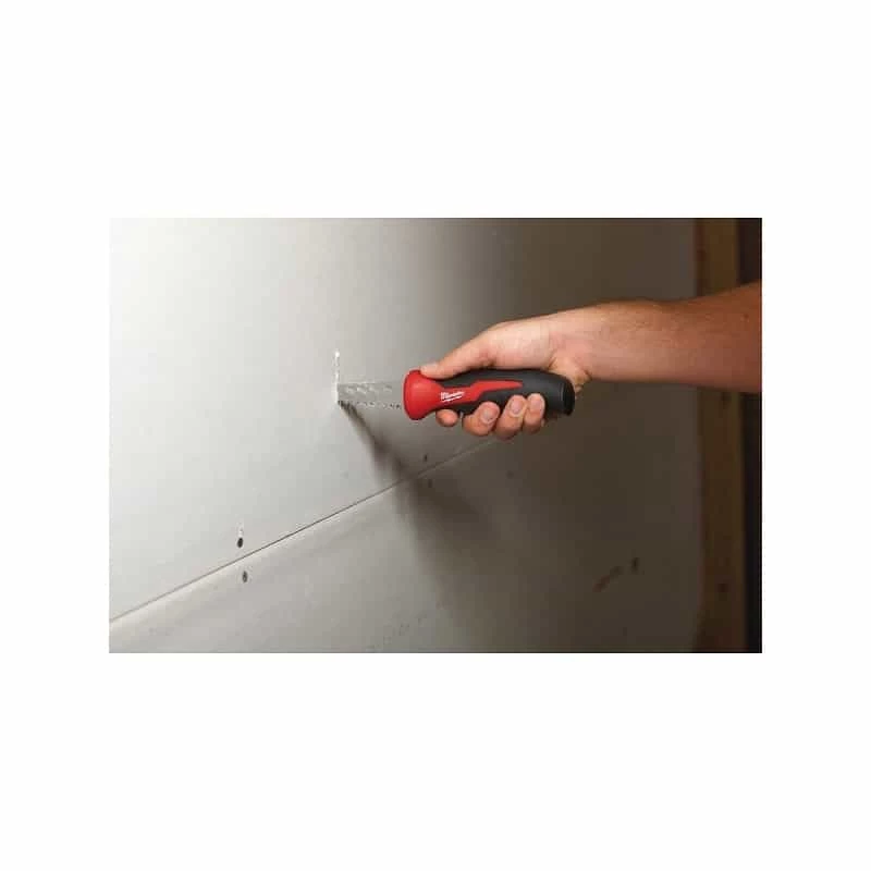 Idéal pour couper dans des plaques de plâtre, la lame de 150 mm de ce couteau à guichet Milwaukee permet d’agrandir des trous ou encore d’adoucir des bords rugueux. Par ailleurs, elle bénéficie d’un traitement anti-corrosion.