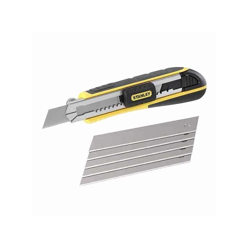 Fourni avec 6 lames FatMax, le cutter à cartouche 0-10-481 de STANLEY a été fabriqué avec un corps ABS bimatière offrant ainsi une bonne préhension de l’outil.