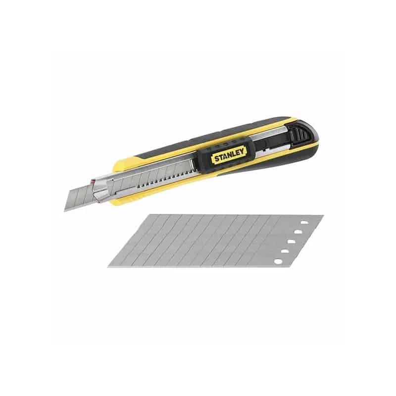 Fourni avec 6 lames FatMax, le cutter à cartouche 0-10-475 de STANLEY a été fabriqué avec un corps ABS bimatière offrant ainsi une bonne préhension de l’outil.