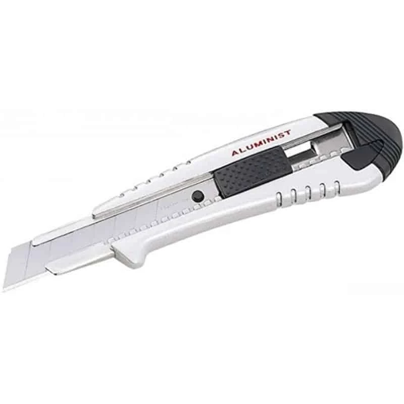 Le cutter Tajima est un couteau renforcé en aluminium de 18 mm. L’outil possède un rangement des lames de rechange dans la poignée.