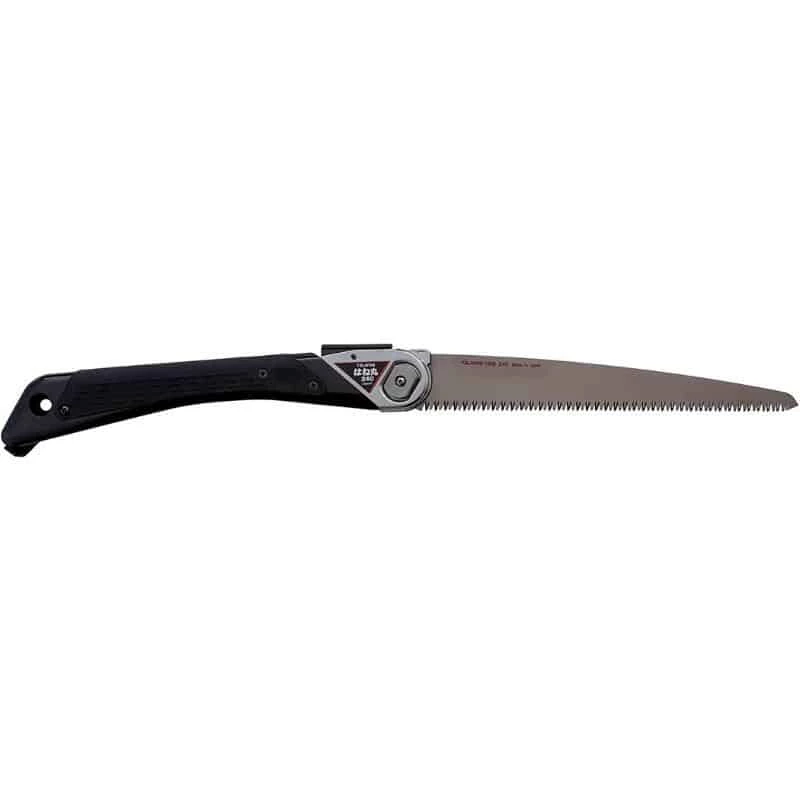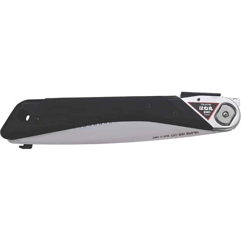La scie japonaise pliable TAJIMA se déploie d’une seule main sous l’action du ressort. La lame en acier trempé 9 TPI de la scie mesure 240 mm de long et est adaptée pour un usage polyvalent. L’outil pèse 0.23 kg.