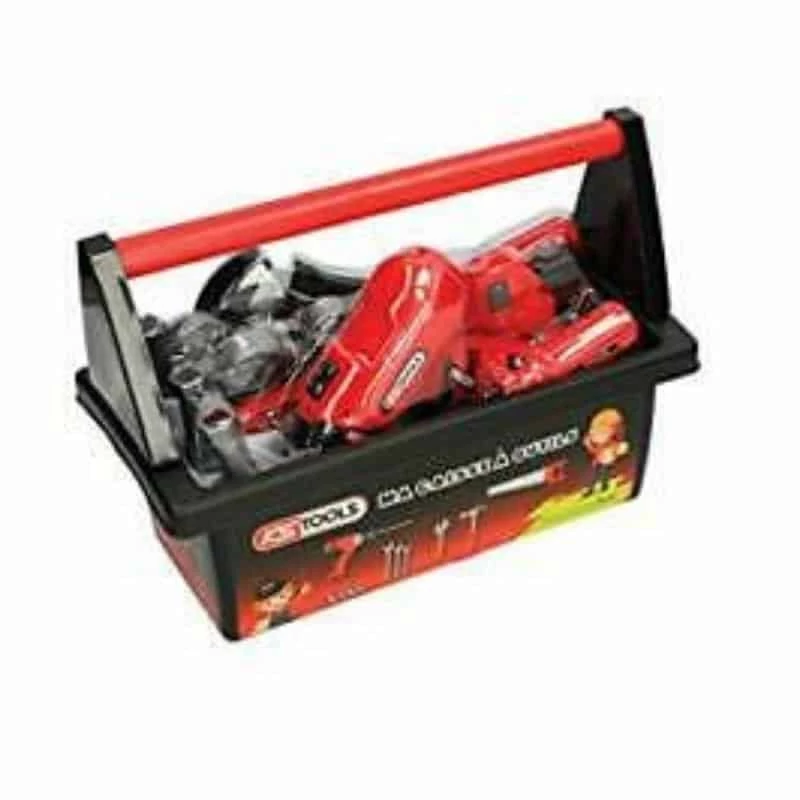 Caisse complète comprenant visseuse et forets, marteau, clés, lime, scie, etc. Caisse crée pour le développement et l’éveil des enfants avec fonctions réalistes des outils. Son utilisation est faites pour les enfants de 3 à 8 ans et non adapté aux enfants âgés de moins de 36 mois. Attention ! Risque d’étouffement dû à la présence de petites pièces.