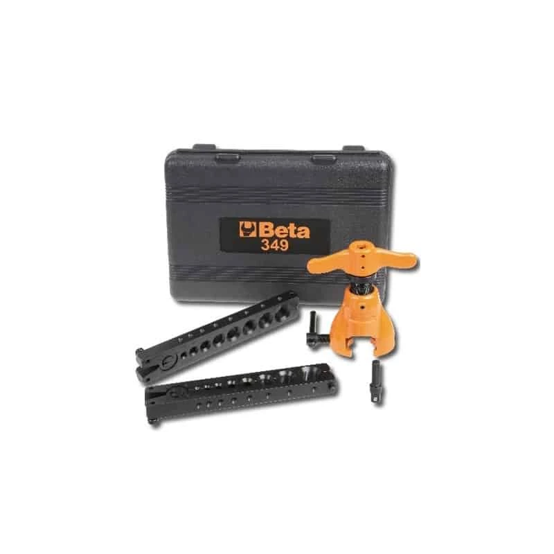 Appareil à collets réglable pour cuivre et alliages légers livré dans son coffret plastique. Glissière métrique et en pouces. Carré 3/8 et adaptateur pour utilisation avec perceuse visseuse.
